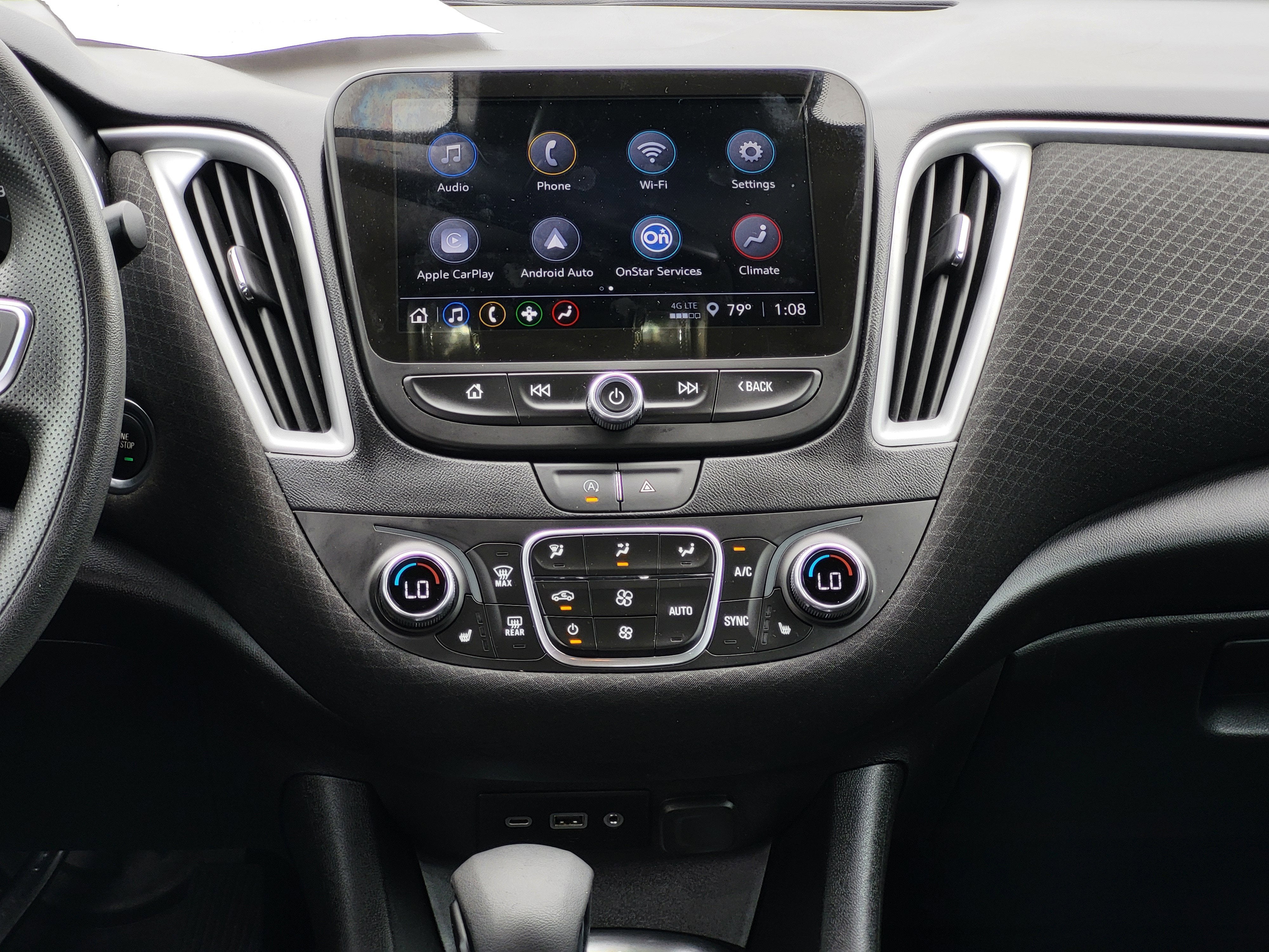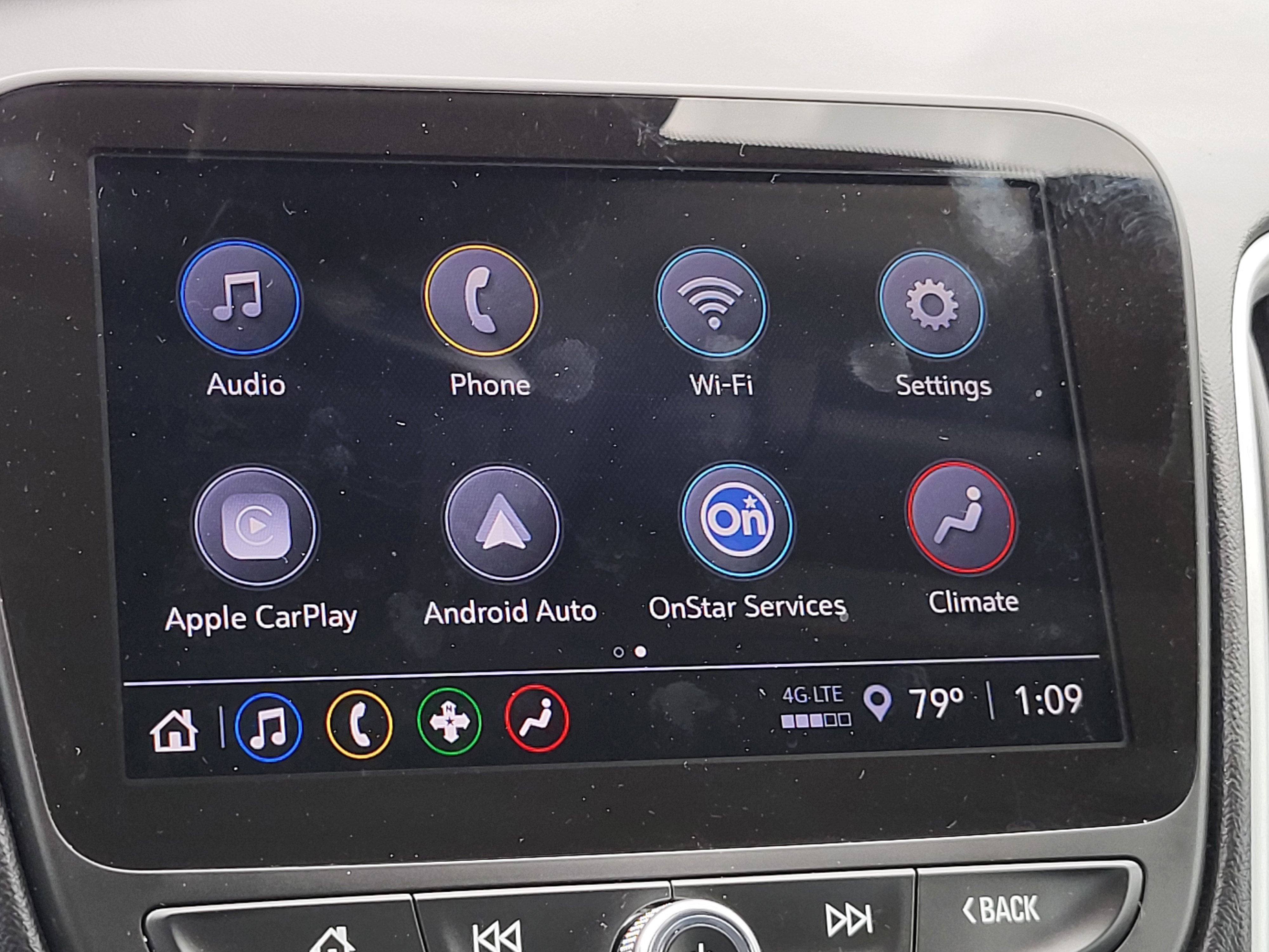 - Audio system, Chevrolet Infotainment 3 system, 8" diagonal color touchscreen, AM/FM stereo. Additional features for compatible phones include: Bluetooth® audio streaming for 2 active devices, voice command pass-through to phone, Apple CarPlay and Android Auto capable.